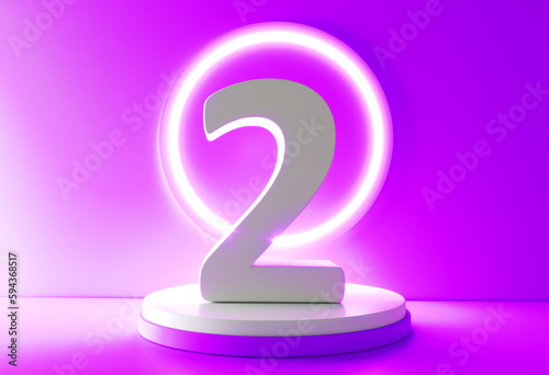 © adobedesigner, Naklejka premium Number 2 in white on light purple background, two number isolated 3d rendering. Number 2 on the podium.