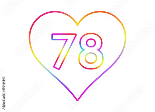 Fototapeta premium Number 78 into a white heart with rainbow color outline.