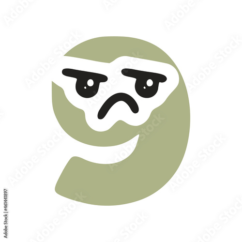 Fototapeta premium Number 9 kawaii character with sad face, vector clipart