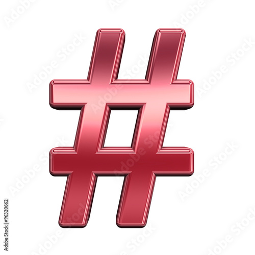 © Piotr Pawinski, Obraz premium Number mark from shiny red alphabet set, isolated on white. Computer generated 3D photo rendering.