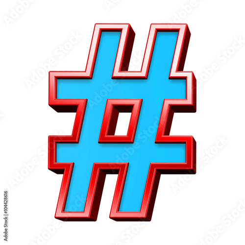 © Piotr Pawinski, Fototapeta premium Number mark sign from blue glass with red frame alphabet set, isolated on white. Computer generated 3D photo rendering.