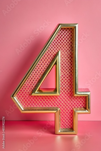 Obraz premium number 4 metal pink