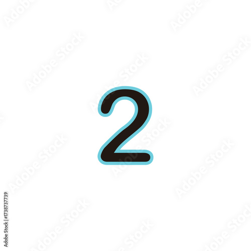 © Amrah, Fototapeta premium Number 2 neon, blue geometric symbol simple logo vector
