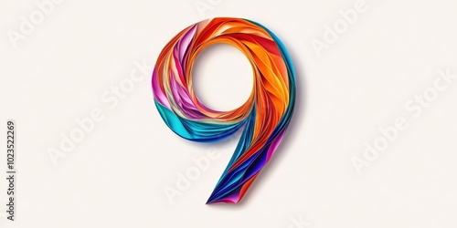 © Ali, Fototapeta premium Number nine made of colorful paper.