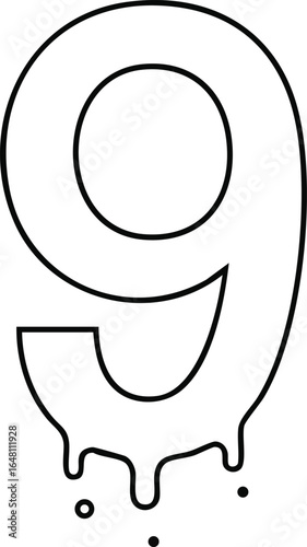 Fototapeta premium Number nine with melting effect outline style simple vector illustration...