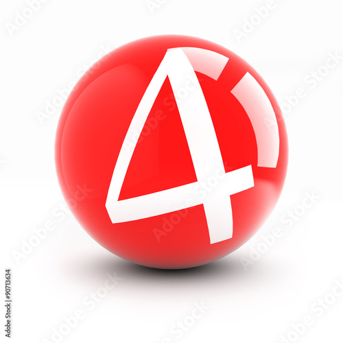 Obraz premium Number 4 on a bright red balls isolated on white.