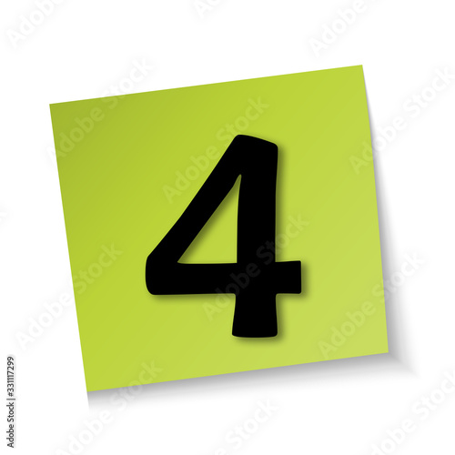 Fototapeta premium Number 4 on Note paper pad green on white background,text on paper.