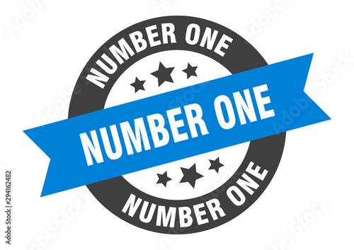 © Aquir, Obraz premium number one sign. number one blue-black round ribbon sticker