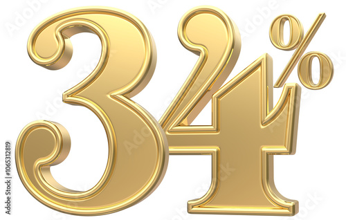 © Graphic123, Obraz premium 34 Number Percent Gold 3D Render