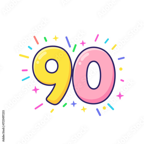 Fototapeta premium number 90, playful number 90, colorful 90, kidcore 90, birthday number 90,...
