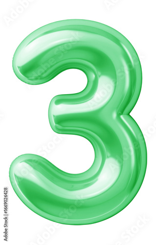 Naklejka premium Number 3 png green 3D balloon, transparent background