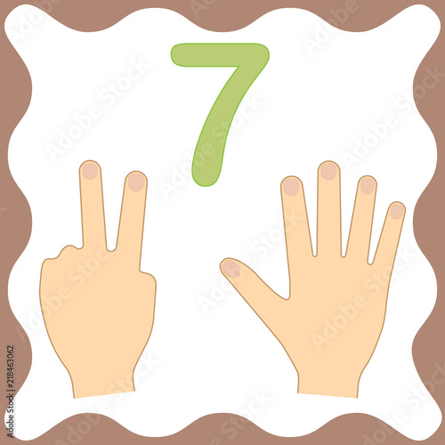 Obraz premium Number 7 (seven), educational card, learning counting with fingers of hand,...