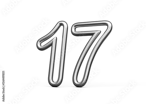 © Hammad, Obraz premium Number Seventeen 17 Made Of Silver Metallic White Background 3D Illustration