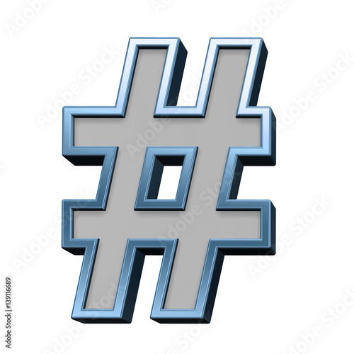 Fototapeta premium Number sign from gray with blue frame alphabet set, isolated on white. 3D...