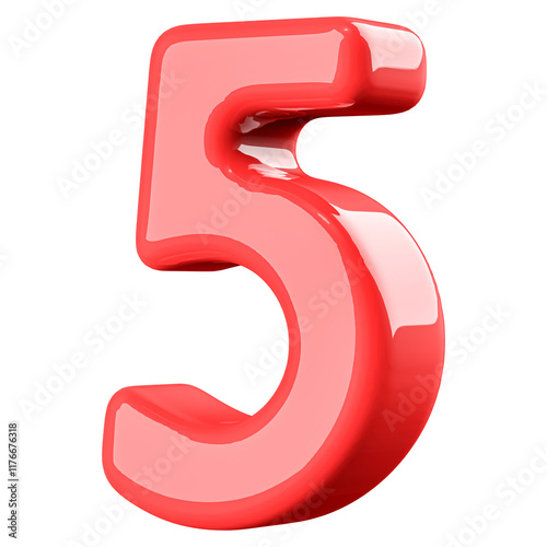 © Chetra168, Naklejka premium Number 5 Sign Red 3D illustration