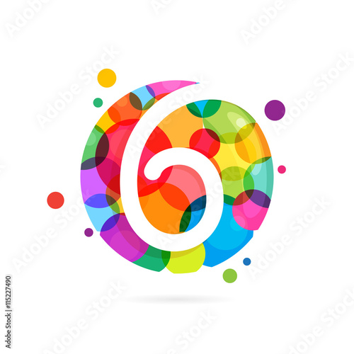 Obraz premium Number six logo with rainbow dots.