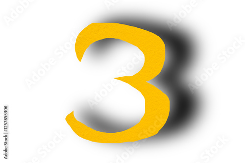 © arita, Fototapeta premium Number three from yellow paper transparent background