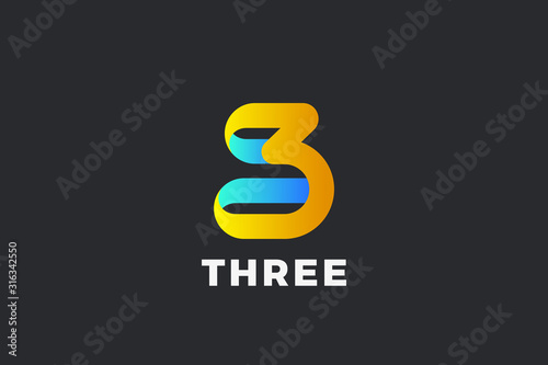 © Sentavio, Fototapeta premium Number 3 Three Logo design vector template Ribbon Font style Typography.