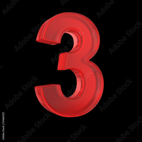 © 123dartist, Fototapeta premium Number three- red isolated with clipping path