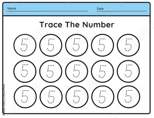 © ajay kumar sonwani , Naklejka premium Number 5 tracing practice worksheet with all numbers for kids learning to count Worksheet. illustration vector