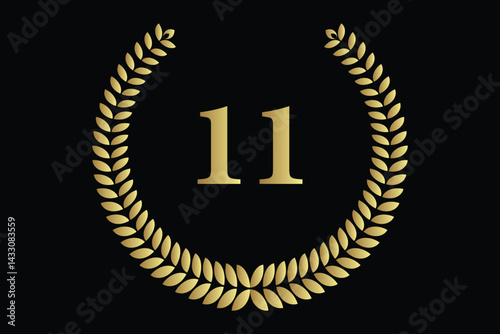 Fototapeta premium number 11 with laurel wreath icon, vector illustration.
