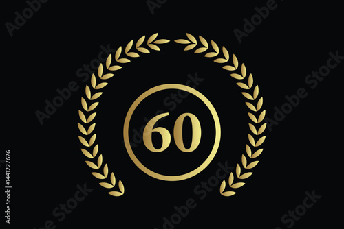 Naklejka premium number 60 with laurel wreath icon, vector illustration.