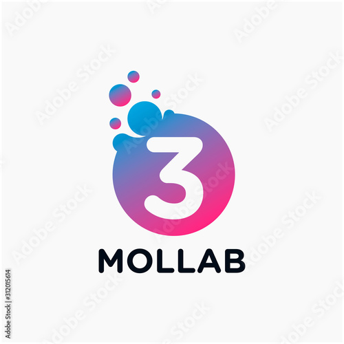Fototapeta premium number 3 with molecule element. Lab, liquid, atom Design concept. Design...