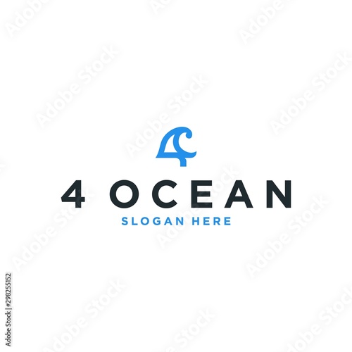 Obraz premium Number 4 with Ocean Logo Design. Line Wave Design Icon. Modern and Beauty...