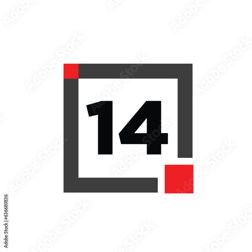Fototapeta premium 14 number with square box icon. 14 box monogram.