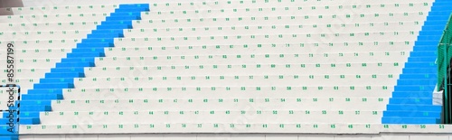 © ChiccoDodiFC, Obraz premium numbered bleachers with seats in soccer stadium
