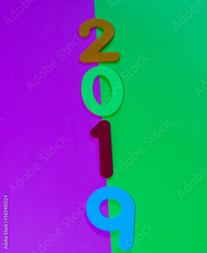 Fototapeta premium Numbers 2019 on green and maroon background.