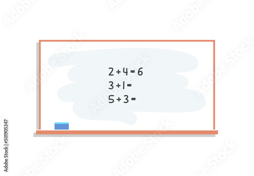 Fototapeta premium Numbers study and math exercises calculating on chalk board at lesson flat vector illustration.