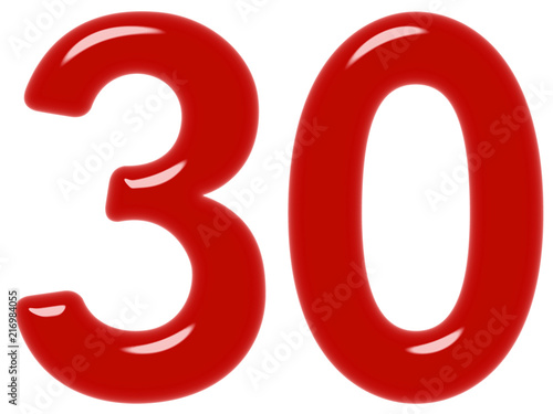 © kostiuchenko, Fototapeta premium Numeral 30, thirty, isolated on white background, 3d render