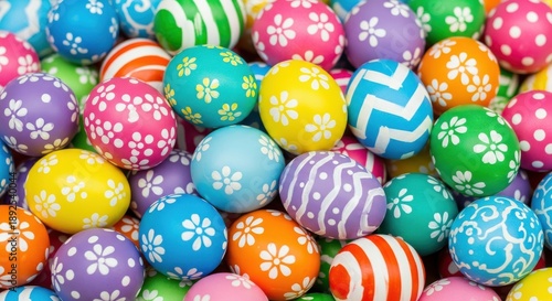 Fototapeta premium Numerous brightly colored and decorated ovoid objects fill the entire frame.