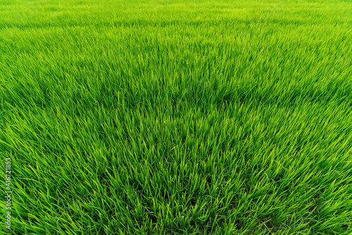 Obraz premium Numerous green rice fields in natural light are views from above.