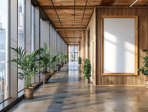 © Valentin, Obraz premium Numerous potted plants along a lengthy corridor