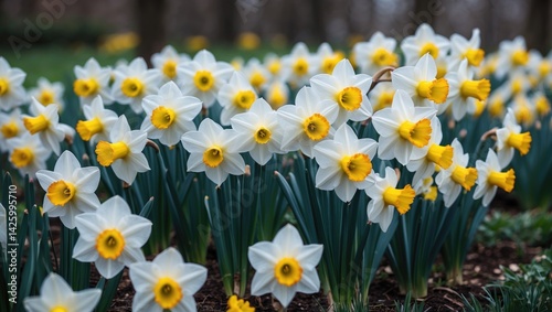 Fototapeta premium Numerous white daffodils blooming in the park