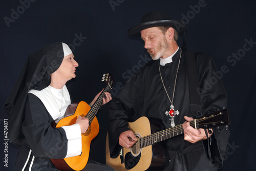 Obraz premium Nun and priest singing
