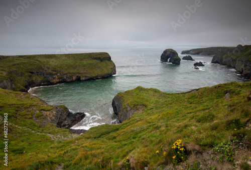 © Michalis Palis, Obraz premium Nuns beach and virgin rock, Ballybunion, Ireland. Atlantic ocean. Cloudy sky.