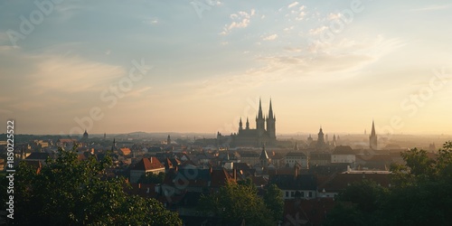 Fototapeta premium Nuremberg cityscape featuring medieval and modern buildings, urban growth and...