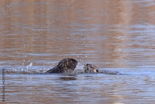 Fototapeta premium Nuria / Biber an einem Fluss im Frühling