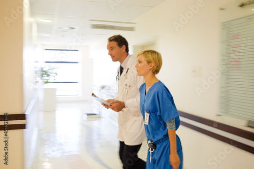 © KOTO, Fototapeta premium Nurse and doctor walking in hospital hallway