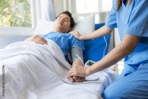 © Witoon, Obraz premium Nurse and male patient in hospital.