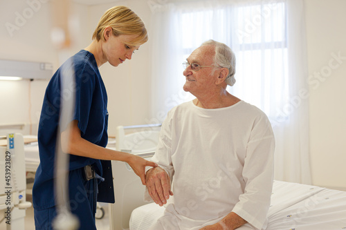 © KOTO, Fototapeta premium Nurse and older patient talking in hospital room