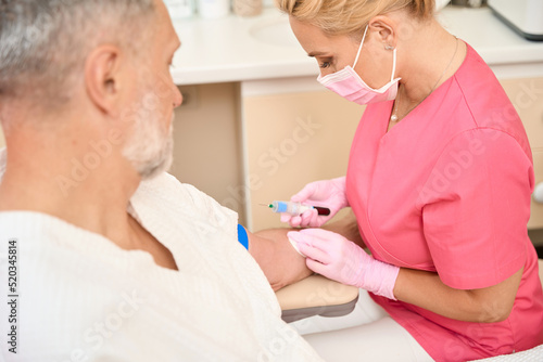 Fototapeta premium Nurse finished drawing the patient blood into the syringe