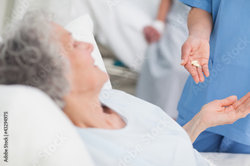 © WavebreakmediaMicro, Obraz premium Nurse giving drugs to an elderly patient