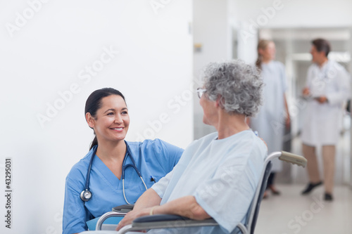 © WavebreakmediaMicro, Obraz premium Nurse looking at a patient in a wheelchair