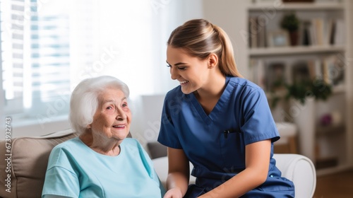 © ETAJOE, Obraz premium Nurse or Physical therapist person visit Elderly patients at home