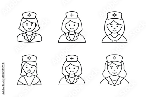 © MONI, Fototapeta premium Nurse sets icon in line style vector on white and black background.