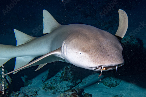 © Andrea Izzotti, Obraz premium Nurse Shark close up on black at night